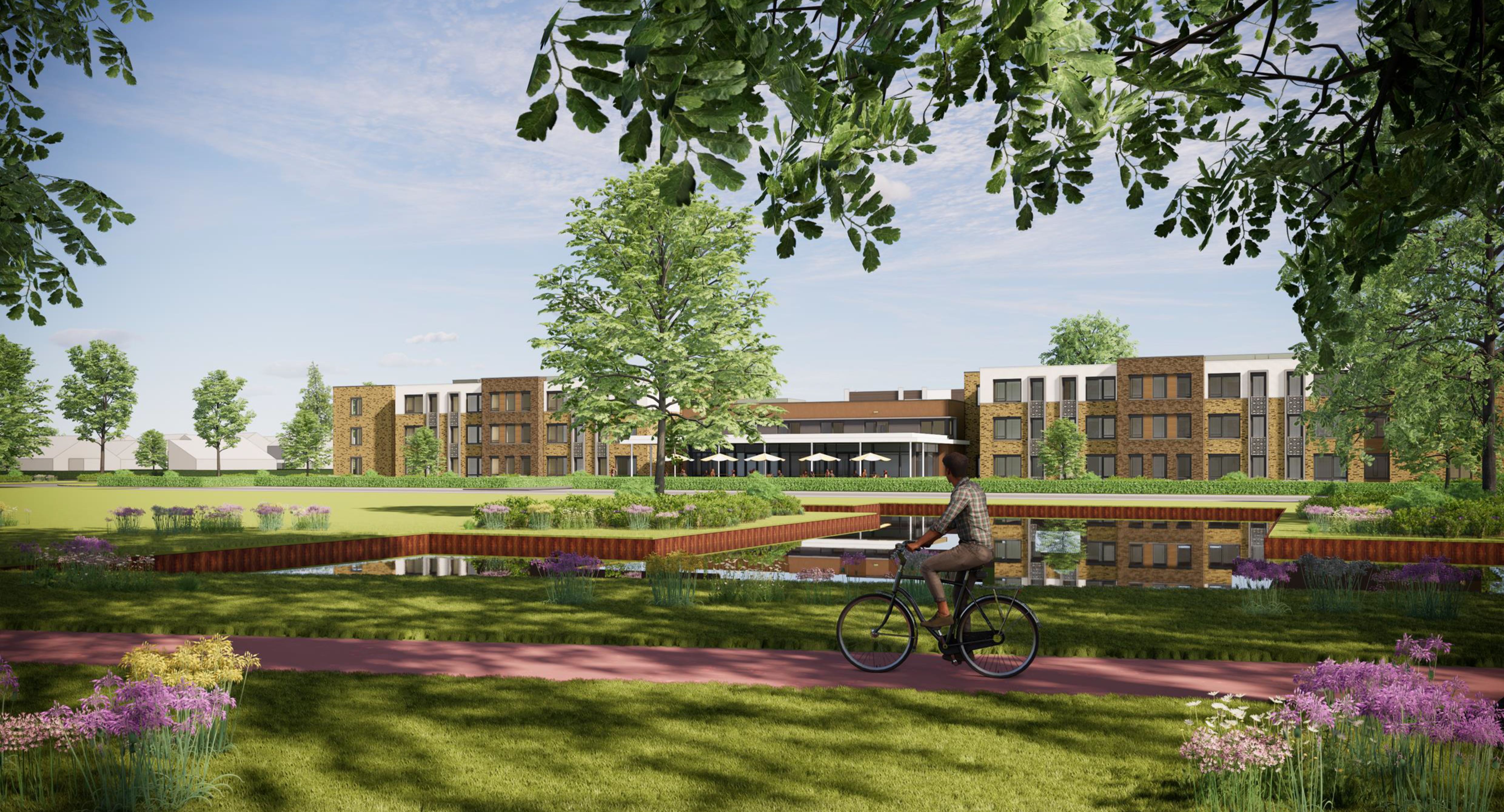 De nieuwbouw krijgt een afgesloten binnentuin waar de bewoners vrij en veilig kunnen rondlopen. De vijver langs de Markeloseweg zal worden gedempt waarna dit gebied als groen wordt ingericht.